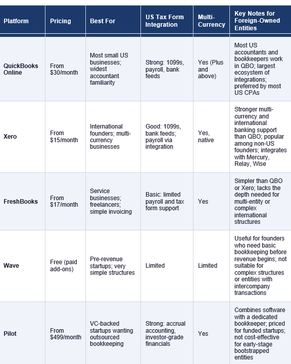 The bookkeeping software you choose determines how easy or difficult every downstream task becomes: tax preparation, Form 5472 reporting, payroll reconciliation, intercompany transaction tracking, and financial statement production. For a foreign-owned US entity, the decision involves considerations that do not apply to a domestically owned business.