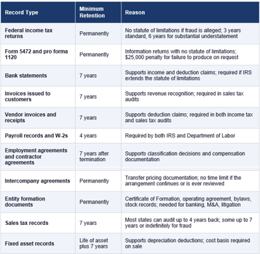 When the IRS requests records related to Form 5472 specifically, the penalty for failure to produce records is an additional $25,000 per failure, separate from the filing penalty. This makes the Form 5472 transaction log and the underlying intercompany records the single most important records to maintain and to be able to produce quickly.
